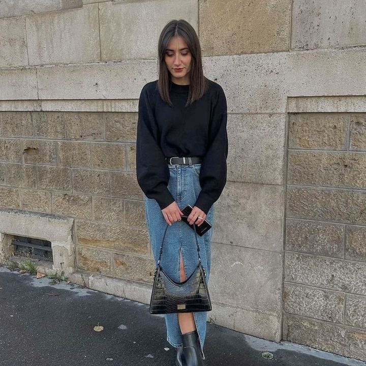 The Julicia Skirt complements my winter wardrobe beautifully, offering a stylish twist to casual winter outfits. Its flattering A-line silhouette and versatile denim fabric make it a go-to choice for pairing with a cozy crewneck shirt.